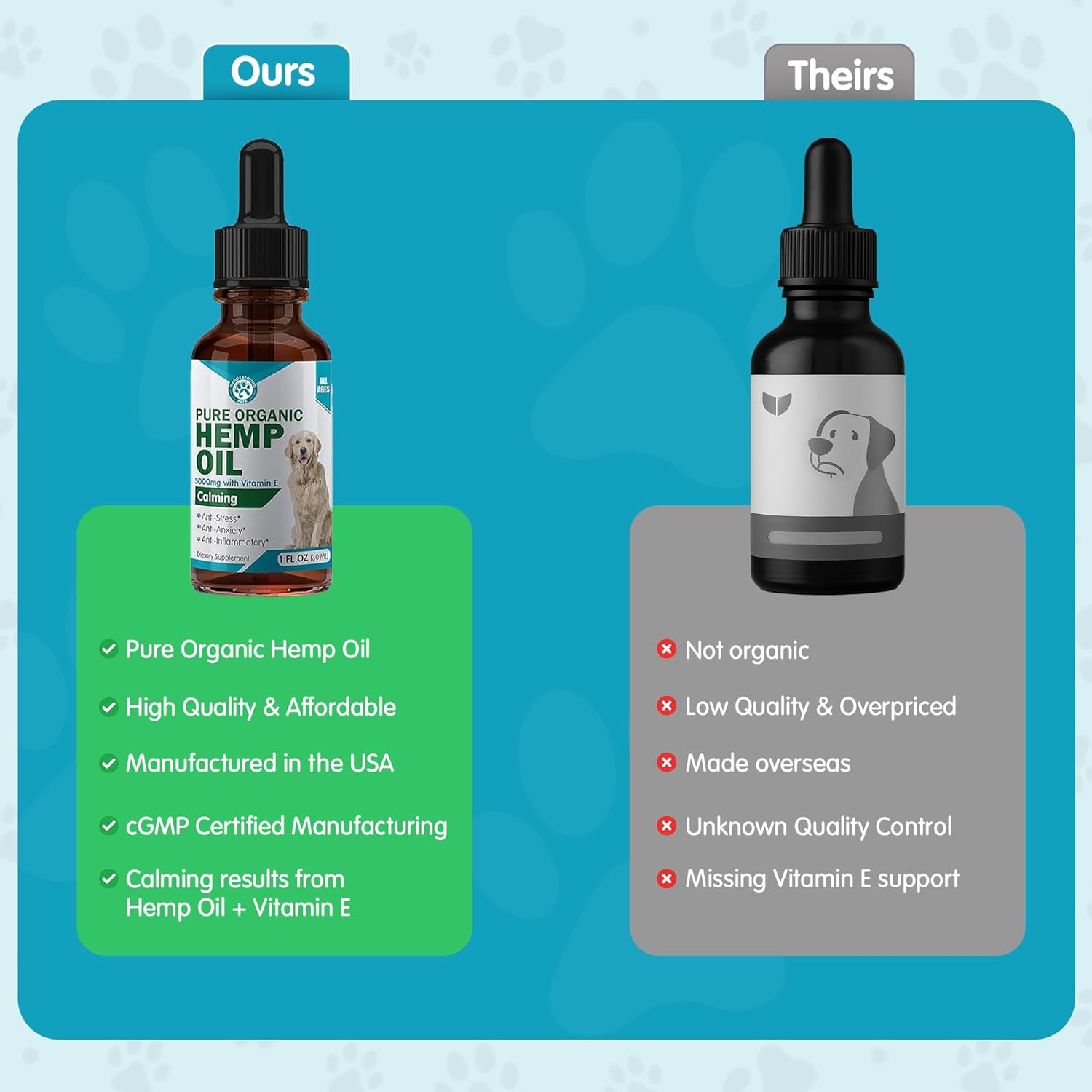 REDUCES STRESS & SEPARATION ANXIETY: Our formula helps dogs & cats with motion sickness, travel, storm anxiety, chewing, inappropriate marking, hyperactivity, aggressive or destructive behavior. Hemp oil is a perfect calming remedy for your dogs, cats and pets anxiety.