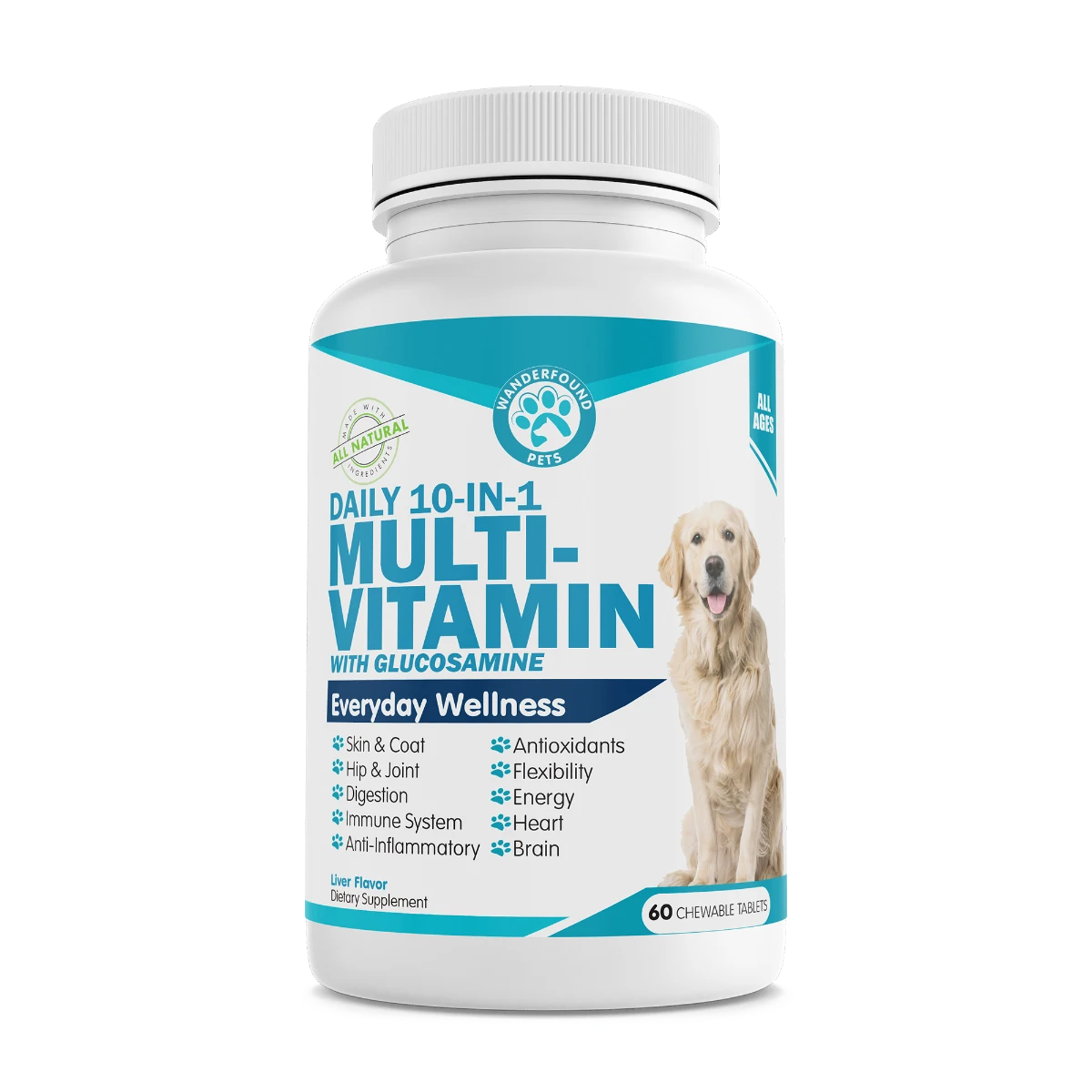 10 AMAZING BENEFITS IN 1 CHEWABLE TABLET: 10-in-1 Multivitamin is a special blend of vitamins, minerals, probiotics, and glucosamine for your furry pal.